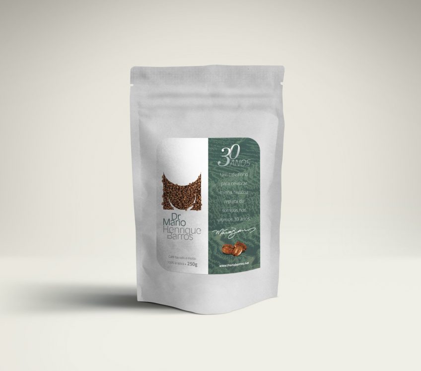 Aqui em Espírito Santo do Pinhal não existe forma mais gostosa e carinhosa de se comemorar uma conquista do que tomando um cafezinho da nossa terra. Pensando nisso, ao completar 30 anos de carreira, o Dr. Mário Henrique Barros presenteou seus clientes com um café que levava a sua própria marca. O desenvolvimento da embalagem ficou sob nossa responsabilidade, assim como um vídeo com depoimento dele contanto sua trajetória.