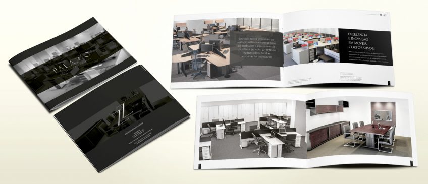 A Palazzo Móveis é uma empresa que está localizada em uma das avenidas mais movimentadas de Campinas, SP. Para esta loja de fábrica de móveis corporativos desenvolvemos a Identidade Visual, que inclui papelaria institucional, e também o catálogo usado na loja e por vendedores externos. Para esta peça buscamos trazer uma diagramação limpa, minimalista e moderna, sem tirar o destaque de cada detalhe dos produtos.